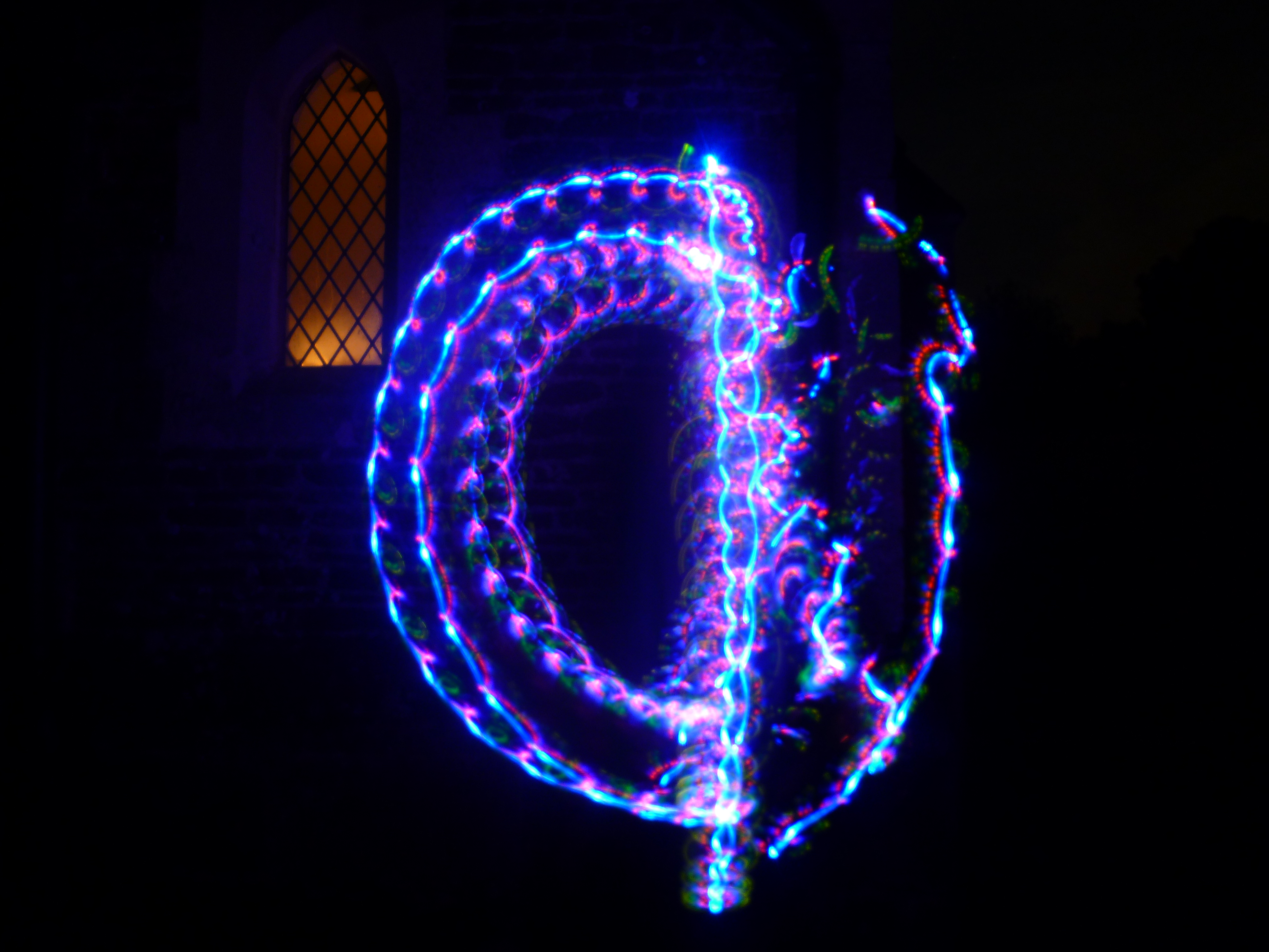 These glowsticks strobe between Red Green and Blue. This means that they are white(ish) while stationary and make streaks of the seperate colours when moving. Its an awesome effect but difficult to describe in words. Check out the pic above when I was playing with one of them to get some sort of idea what it looks like. ~£2 each, available at glowsticks.co.uk