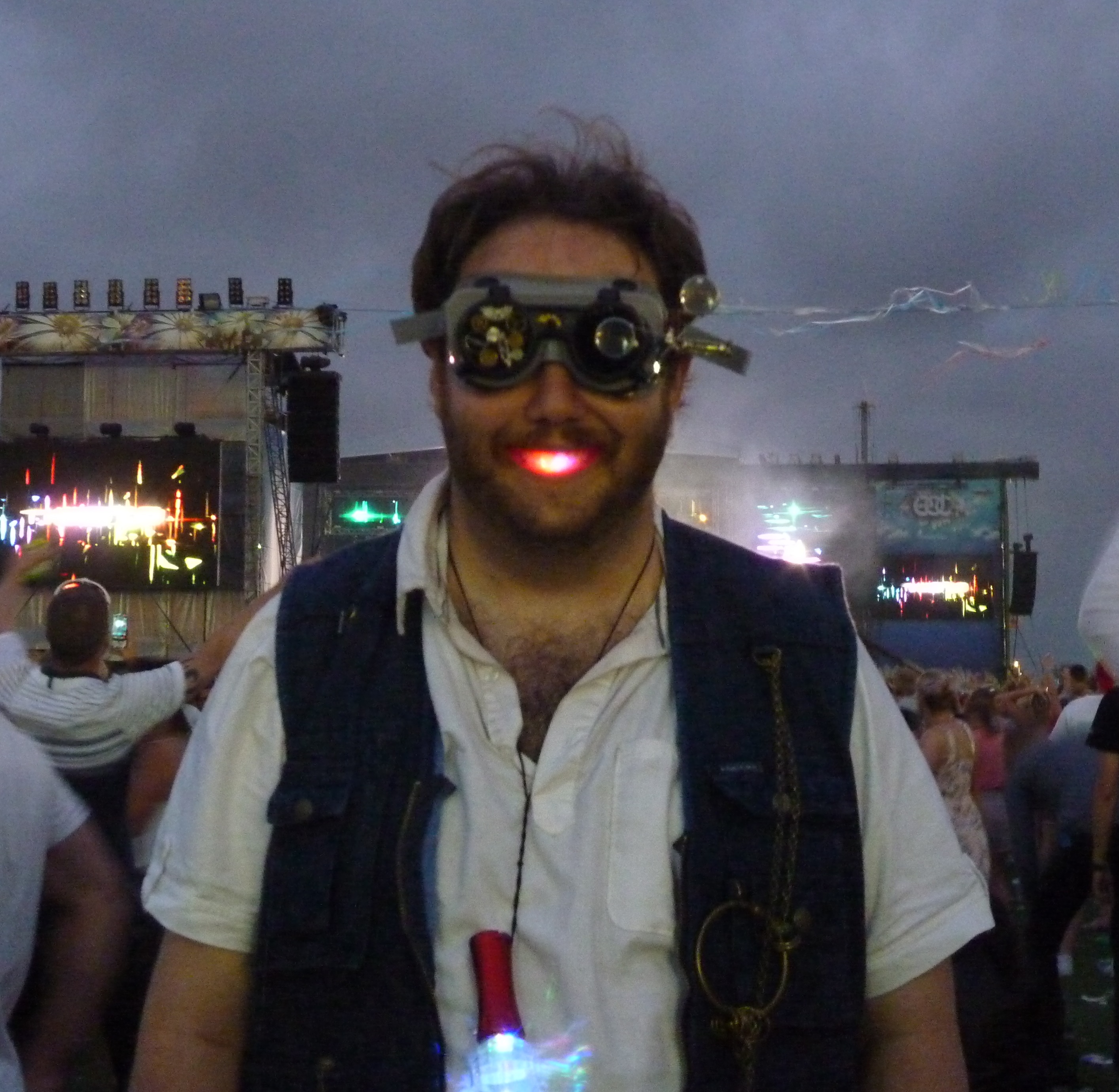 These contain diffraction lenses that turn all lights into rainbow streaks, novas or even hearts and smiley’s there are a whole variety of types around, there is a good selection at fantazia. £2-5 a pair Warning: viewing club lights through these, may melt your mind, also watch where you’re arms are going when dancing energetically, otherwise you make end up poking someone, in the non digital sense